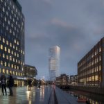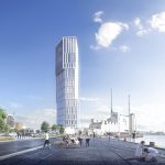The property developer Olav de Linde and C.F. Møller Architects have published plans for a 144-metre tall office building close to the Port of Aarhus. Appearing as a bright sculptural landmark, it will welcome city life into an active public realm with new cultural, retail and business amenities.