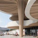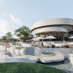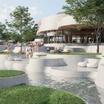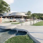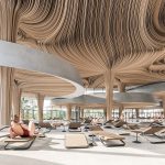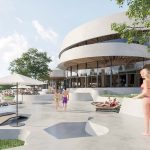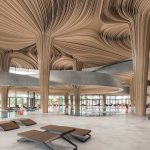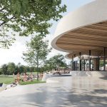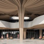 The visual design of the retained spaces is markedly organic, based on circular strokes. In order to achieve a homogenous final visual expression of the complex, this approach is applied as the starting point for further design of the envisaged buildings and exterior layout. The planned interventions therefore make no design distinction between the building and the exterior layout: all are to employ the same materials and design principles. This enables the congruity of the entire layout below the hotel entrance level with no alterations to the hotel above this grade.