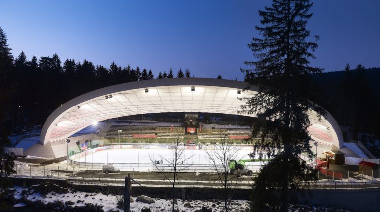 In Schierke, a district of Wernigerode at the foot of the Harz Mountains in Germany, GRAFT has renovated a listed natural ice rink. The project is awarded with the German Design Award 2019.