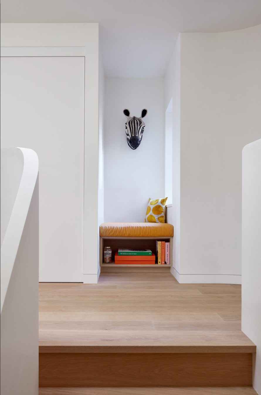 Heather Dubbeldam, the principal architect of the project, eloquently expresses the design philosophy: “Curvilinear forms are employed throughout… enhancing the house’s sculptural sensibility.” Arched openings between rooms frame enticing vistas of the spaces beyond, resonating with curved walls, display nooks, and the kitchen island’s banquette.