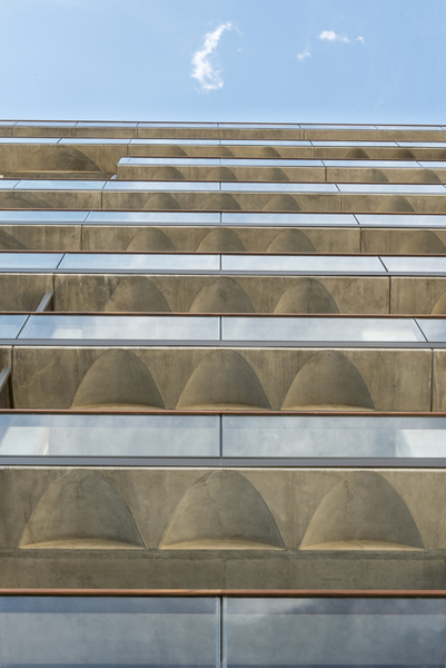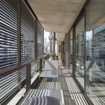 Inspired by traditional housing in Buenos Aires, where the boundaries between inside and outside living are blurred, the design features split-level living spaces that extend into generous balconies and double-height patios. The apartments combine a warm, natural palette of wooden balustrades, bronze screens and stone-tiled bathrooms with elegant vaulted concrete ceilings. The combination of moveable sun screens and projecting balconies provides shade from both low and high angled sun, while ensuring privacy, allowing natural ventilation and drawing daylight into the apartments.
