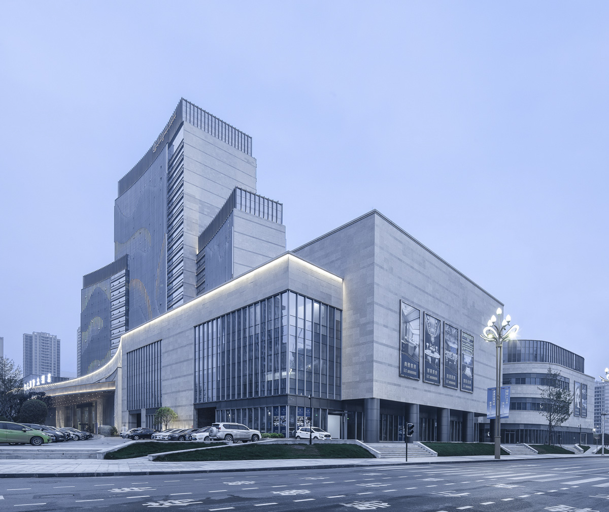 Hengxu International Hotel is located in Lingang Economic and Technological Development Zone, Yibin City (a prefectural-level city) in Sichuan Province. In the process of urban modernization, cities like Yibin desire for a ‘land mark’ which in most of property developers’mind has eccentric form and remarkable height. However, what ‘landmark’ means to us, is not the physical condition but the cultural and spiritual core. In this project, Yushe Design tries to create a complex based on the “faraway mountains and nearby water” around the site and echoes to the city’s identity as “Shan-Shui city” which is best known for its mountainous terrain and the first city on Yangtze river. With 384 guest rooms, the new 22-storey, 122,500-squaremeter hotel & complex serves as a dynamic addition to the city.