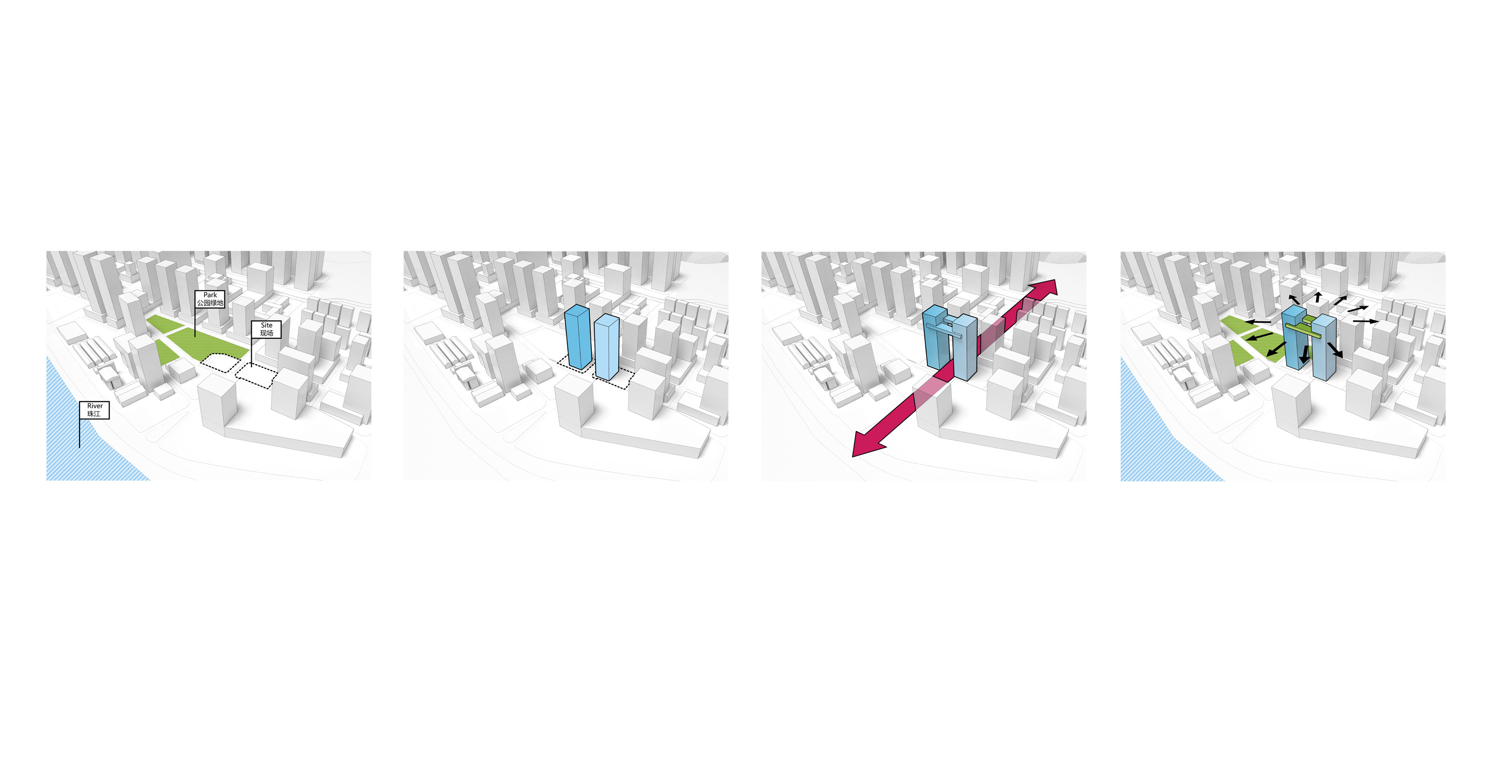 The sky deck towers are prominently positioned with its north fronting along the Zhujaing River providing views to the CBD of the Haizhu district and the central axis of Guangzhou. It also sits in close proximity to the Zhujiang Brewery Heritage Park, a successfully established regeneration project – home to a vibrant community of entertainment, culture, restaurants, and bars.