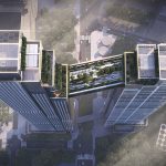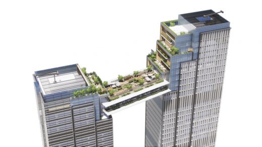 Design Partner, Nick Cordingley adds, “Rising above the sky deck is the ‘vertical green valley’, the inspiration of which unifies the two towers with a series of stepping green terraces cascading towards the bridge, unifying the overall composition.The stepping terraces at the upper level then set the rhythm of the main facades of the two towers, allowing the vertical lines to be articulated in the face of the façade.”