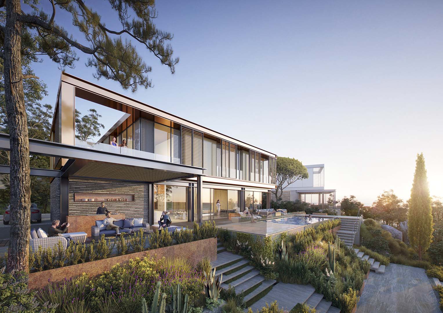 The various different residency options share a common architectural vocabulary and materiality, creating a uniformed brand for the product range. With contrasting shades of the local stone and contrasting dark grey paint, the residences are finished with robust steel detailing. This architectural language has been inspired by the dramatic landscape and marine tradition. The beach club bears a corresponding design palette to the residences and will act as both a waterfront gateway and a central destination for the scheme.