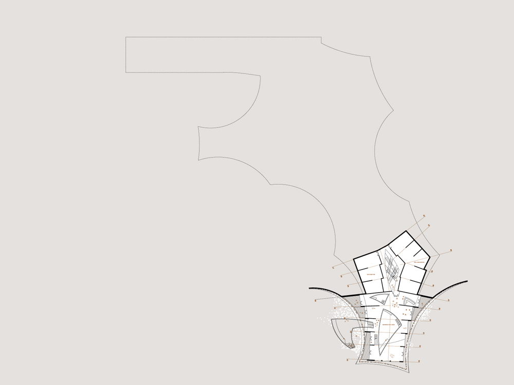 100% sense of privacy; The feeling of being connected with nature is one’s intimate relationship. In order to nurture it, a great measure of privacy needs to be provided to the guests. The large mass of the building is broken up into smaller sections with the users never seeing more than one or two sections at any one time due to their curved shape. The concave design of the sections envelops the different programmes and defines the space intended for them. It ensures privacy to the users and prevents the views from crossing with the activities of adjacent programme cluster. The guests perceive the