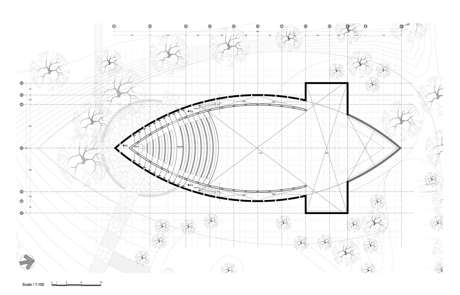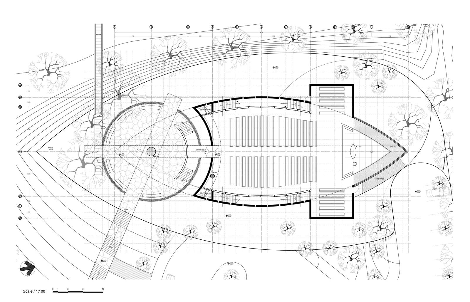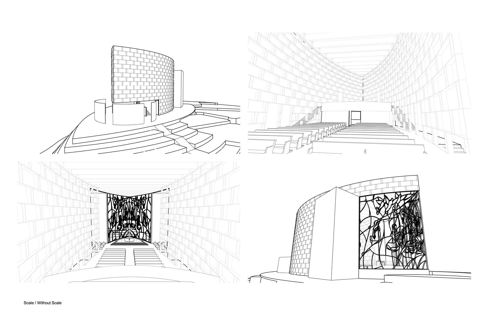 We intend to design special and unique pieces for the church and at its moment depending on the budget we will select manufacturers. There is a geometry theme and all the shapes come form de fish shape of the building.
