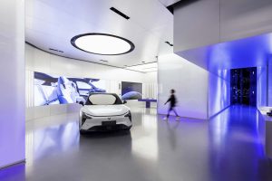 The showroom's design is innovative, imaginative, and captures the spirit of JIDU's mission to create a portal to the future.