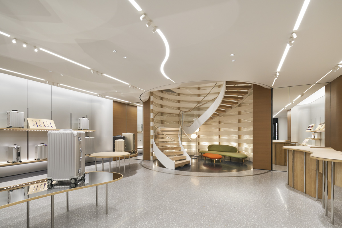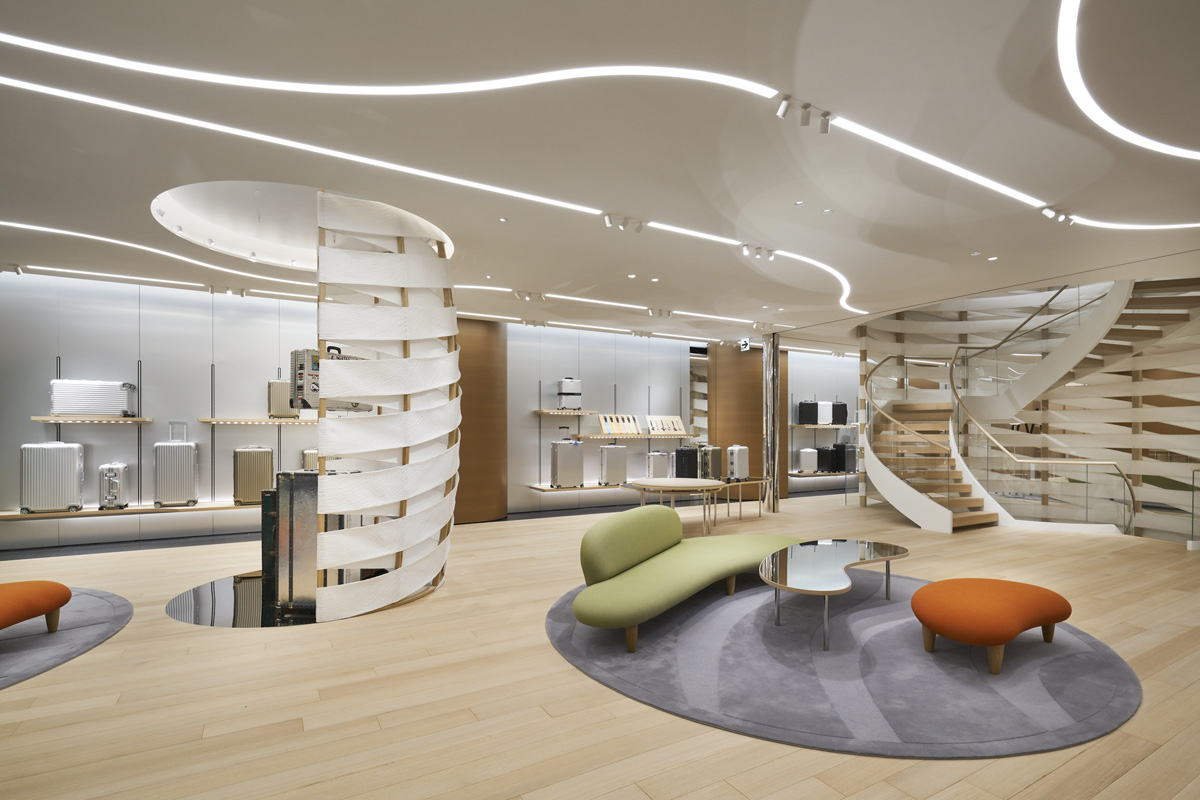 In order to attract attention in the vibrant street life of the Japanese metropolis, architect Stephan Vary and his team at Labvert deliberately chose to create a minimalist place of calm and focus on the essentials of Rimowa. Inspired by Japanese rock gardens, especially the famous Zen garden Ryoan-ji, sweeping, dynamic lines run through the store, inviting the customer to embark on a sensual journey of discovery.