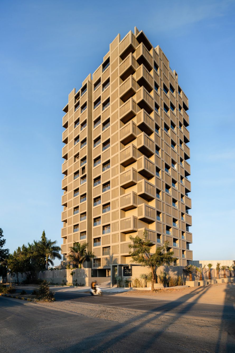 The design of Screen 504 takes cues from traditional Rajasthani architecture, particularly the regions use of jharokhasprojected balcony spaces that provide shade and privacy. The building features a mix of open and screened decks in front of each room, allowing residents to regulate sunlight exposure and airflow according to the changing seasons. These screens, adorned with traditional perforated patterns, can be adjusted to offer varying degrees of enclosure. Additionally, some apartments have double-height decks that extend 20 feet, creating a dynamic interplay of indoor and outdoor space.