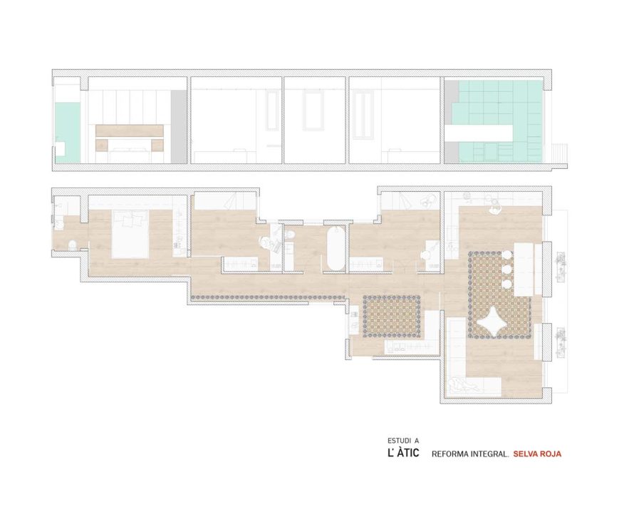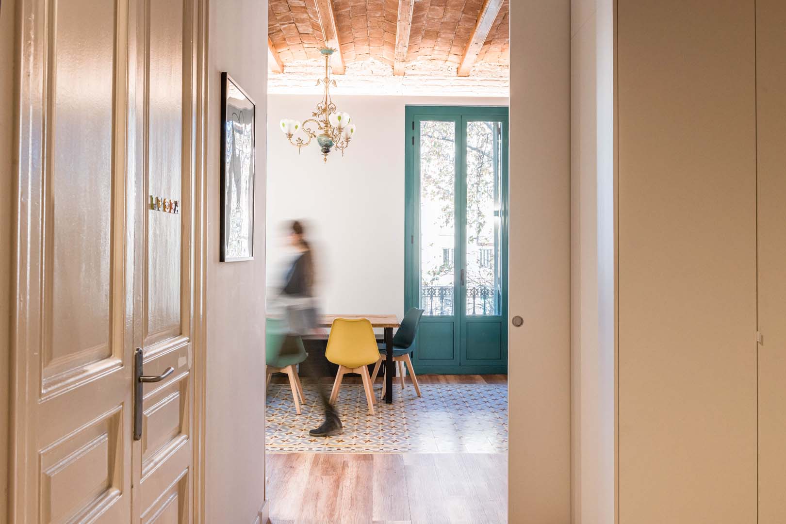 Nestled in Barcelona’s iconic Eixample district, Selva Roja is a 1910 apartment transformed into a harmonious blend of its original essence and contemporary functionality. High ceilings adorned with ornate moldings, solid wood double doors, and traditional shuttered windows narrate the home’s historical roots. However, its outdated layout was ill-suited for the lifestyle of its new occupants—a young couple preparing to grow their family. The renovation carefully reimagines the space while honoring its architectural heritage.