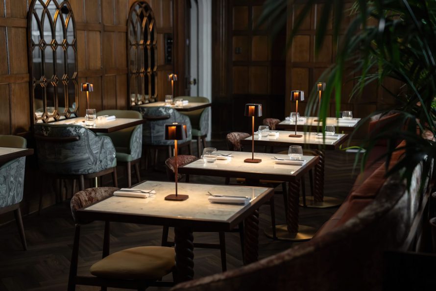 SpaceInvader successfully combined the restaurant’s classic elements, such as the listed Georgian oak paneling, with contemporary design elements to create a harmonious and dynamic atmosphere. By repainting the period ceiling in a warm cream hue and incorporating rich, textured wall treatments, the design team skillfully blended old and new.
