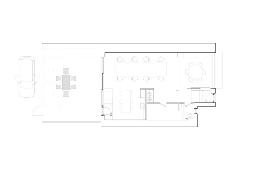 One of the standout features of this project is the ingenious use of vertical space. By tapping into a previously unused crawl space, the architects were able to increase the ceiling height significantly. This structural modification not only added volume to the space but also allowed for the installation of large windows. The influx of natural light transforms the office into a bright, open, and stimulating work environment, crucial for fostering creativity and productivity.