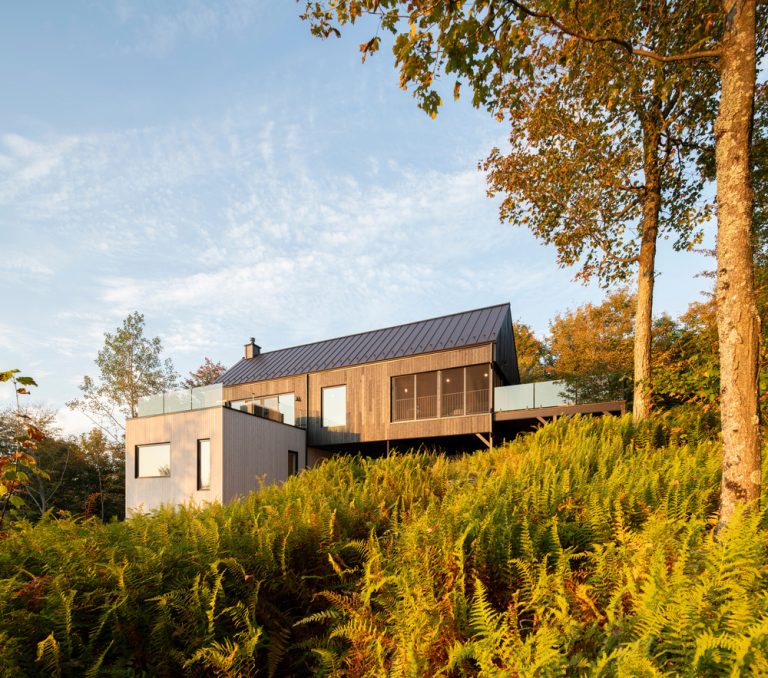 Le Noroît by Guillaume Pelletier Architecte is a serene forest home in Quebec, blending vernacular inspiration with bold cantilevered volumes.