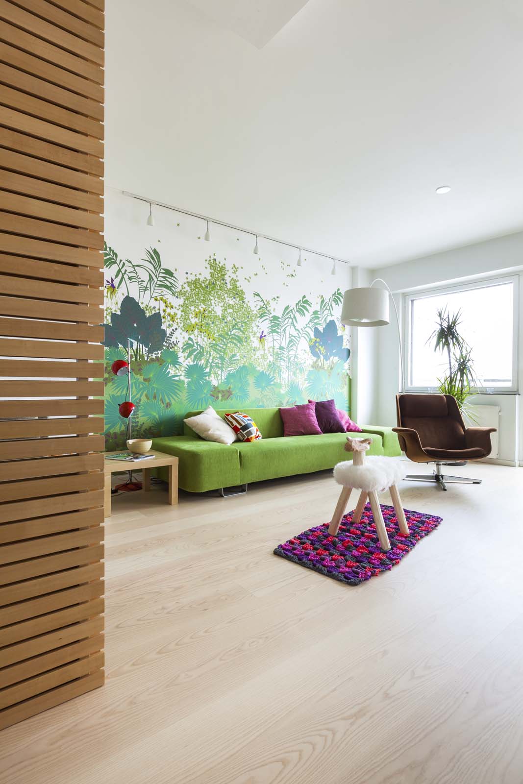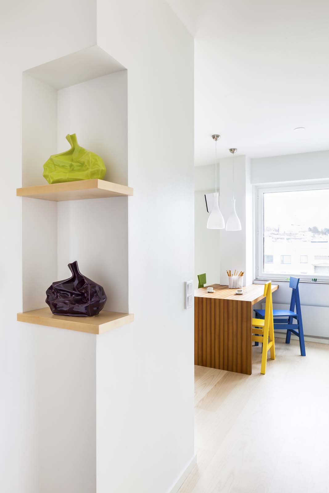 The concept was to share & mix our different cultures: finnish & Italian: using local wood as birch , finnish vintage pieces and contemporany Italian design as twiggy by Foscarini introducing colours and contrast to break “the white appeal†typical of the scandinavian interiors; the past and the present also is intoo in this project, living in harmony.